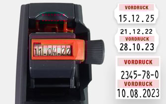 In bestimmten Anwendungsfällen kann es sinnvoll sein direkt mit der Datumskennzeichnung noch eine zusätzliche Information aufzubringen, beispielsweise die Chargennummer oder den Preis. Dies kann über einen zweizeiligen Datumsauszeichner realisert werden. Sollen noch weitere Informationen wie z. B. ein Strichcode oder die Mitarbeiternummer aufgedruckt werden so erfolgt die Lösung in den meisten Fällen über individuell konfigurierte Auszeichner. Hierfür nehmen Sie bitte mit uns persönlichen Kontakt per Telefon (0731 / 20 640 168) oder eMail (Christian.Schiele@schiele-gmbH) auf.