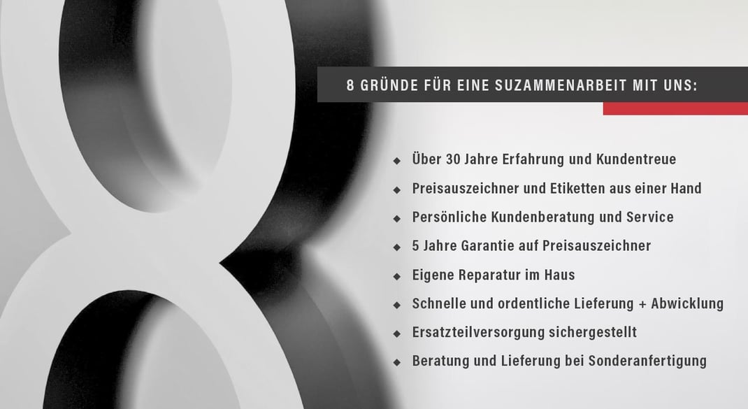 Professionelle Preisauszeichnung geht weit über das Thema "Nur Preise auszeichnen" hinaus. Durch zielorientierte Arbeitsweisen haben wir es geschafft, sowohl für kleinere, inhabergeführte Einzelhändler, als auch für namhafte Handelsketten und Produktionsbetriebe immer eine perfekte Lösung anzubieten, damit unsere Kunden effizient Ihre Artikel auszeichnen können. Ganz gleich, ob Sie Ihre Produkte mit Preise, mit Chargennummer oder mit deren Kombination auszeichnen möchten, wir bieten Ihnen stets die beste Lösung für eine effiziente und kostengünstige Produktauszeichnung. Profitieren Sie von unserer Fachexpertise und nutzen Sie die Vorteile unserer kostenlosen und persönlichen Beratung.