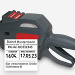 In Kombination mit den zu Ihrem Eierauszeichner passenden Eieretiketten können Sie sich sicher sein, dass z. B. die Gewichtsklasse oder der Preis genau an der richtigen Stelle angedruckt wird. Mit einem Preisauszeichner Eier sparen Sie viel Zeit im Gegensatz zum Schreiben per Hand oder mit einem Stempel. Beim Handauszeichner drücken Sie den Griff zusammen (in diesem Schritt werden die Eieretiketten bedruckt) und lassen anschließend den Griff los (damit kommt das Etikett automatisch vorne raus). Jetzt muss das Etikett nur noch auf der Eierschachtel angebracht werden und fertig ist die Eierauszeichnung. Bei uns können Sie sicher sein dass der individuelle Vordruck immer der Mindestschrifthöhe laut LMIV entspricht.