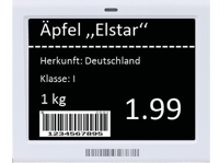 * bei bis zu 4 Änderungen am Preis pro Tag liegt die Haltbarkeit der Batterie bei 5 Jahren. Die Batterie kann ohne großen Aufwand getauscht werden und das Preisschild so weiterhin verwendet werden.